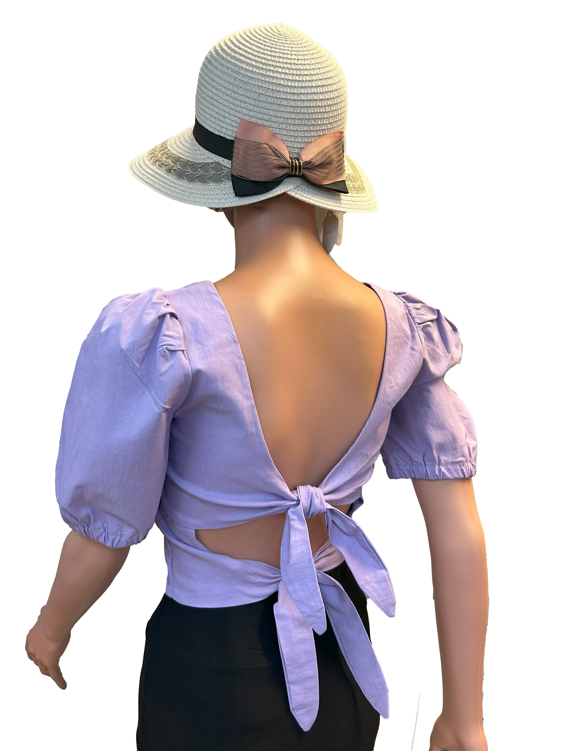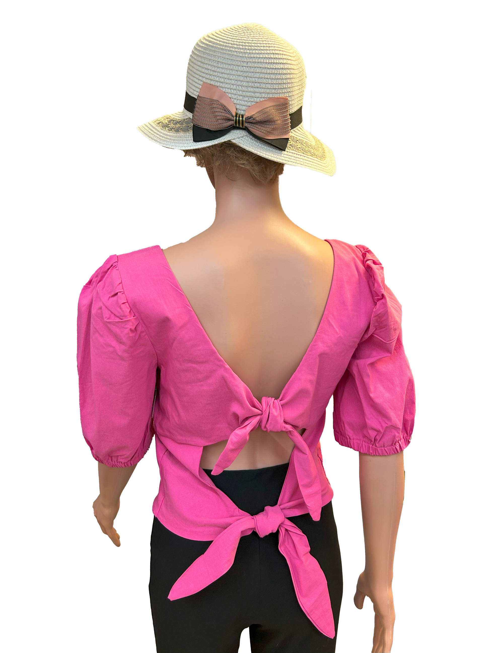 Paw Drazzel Boutique Women's, Casualwear, Semi-Puffed Shoulder, Short Sleeve, Double Back Tie-Down Blouse