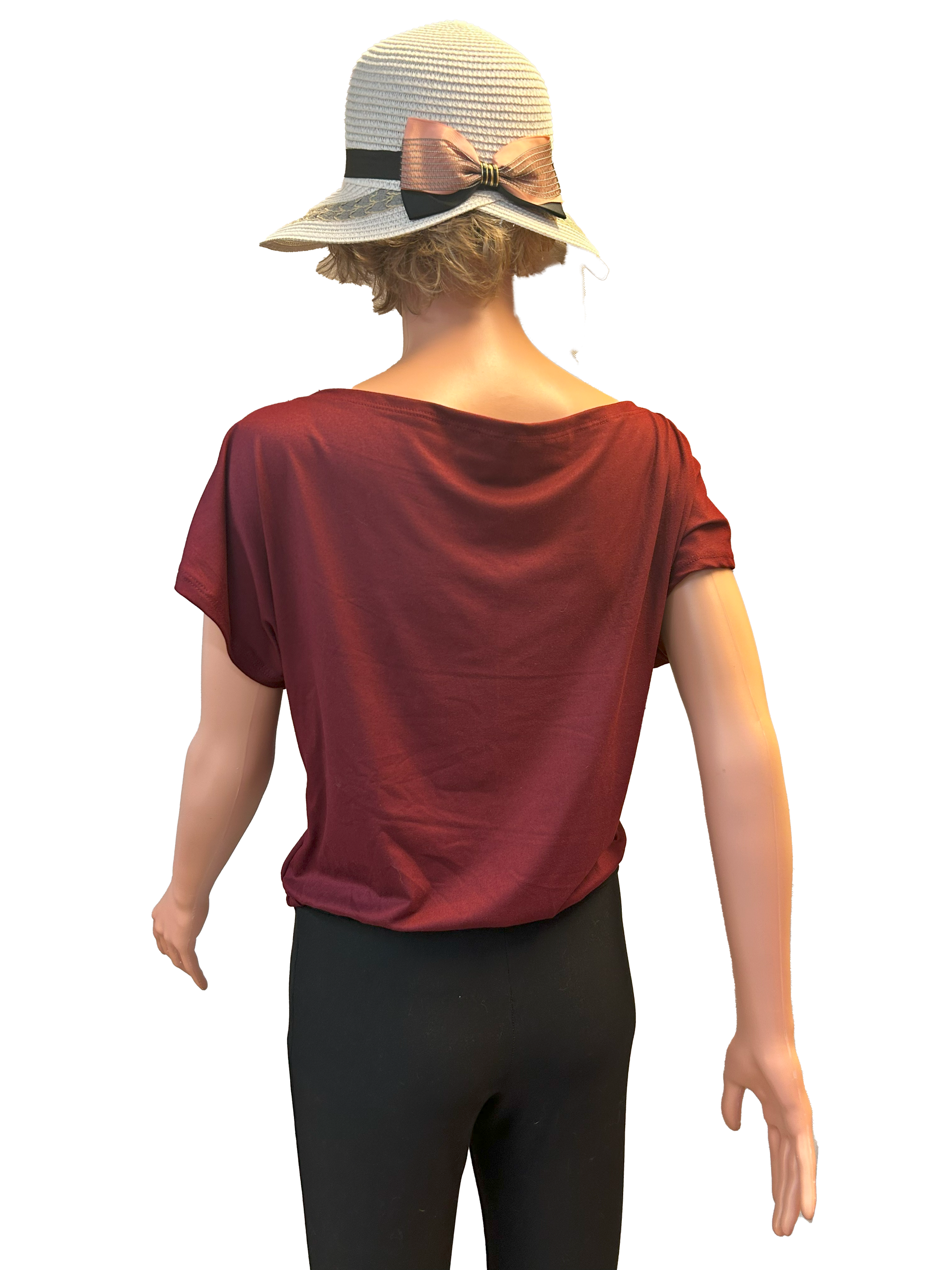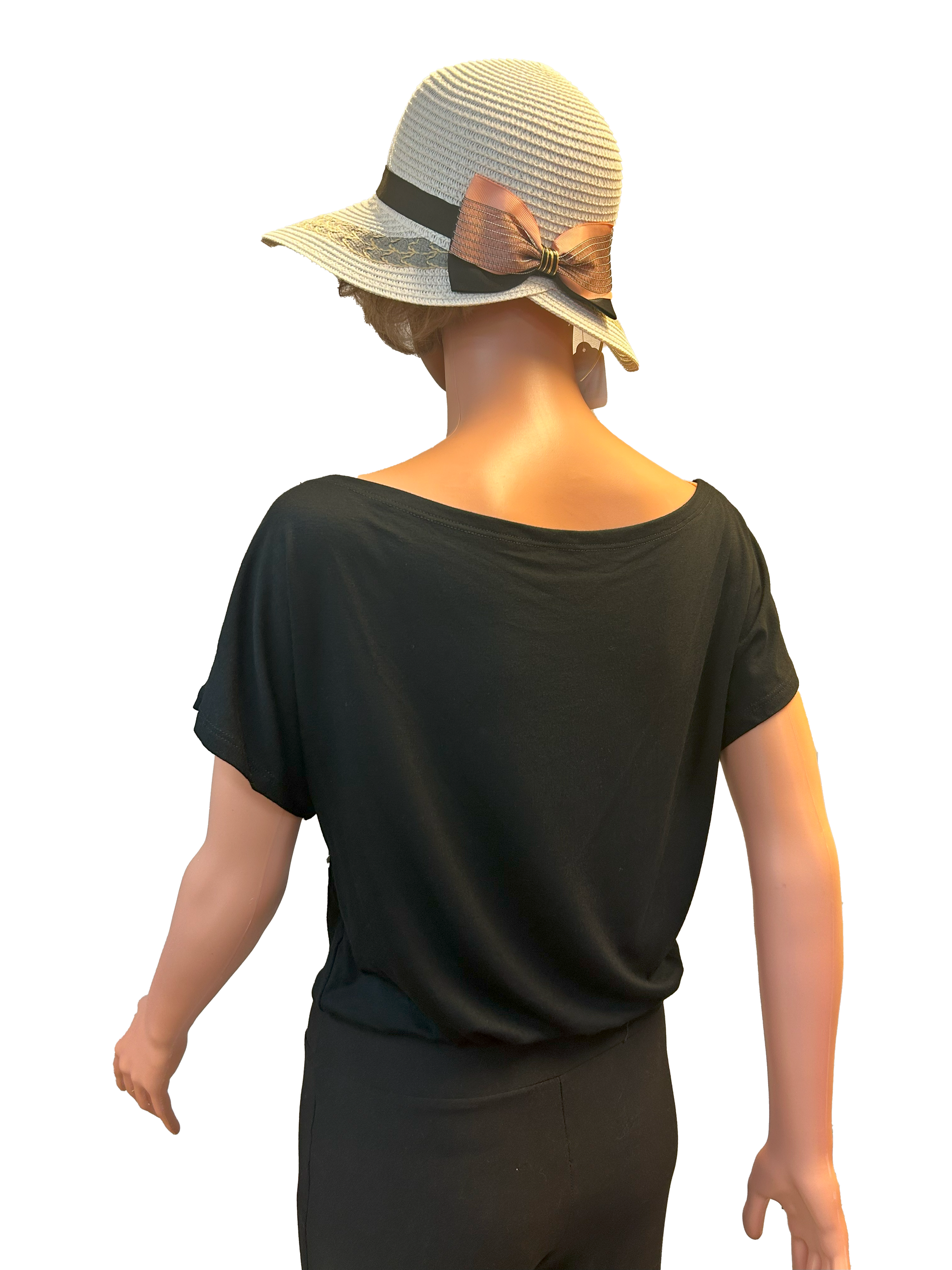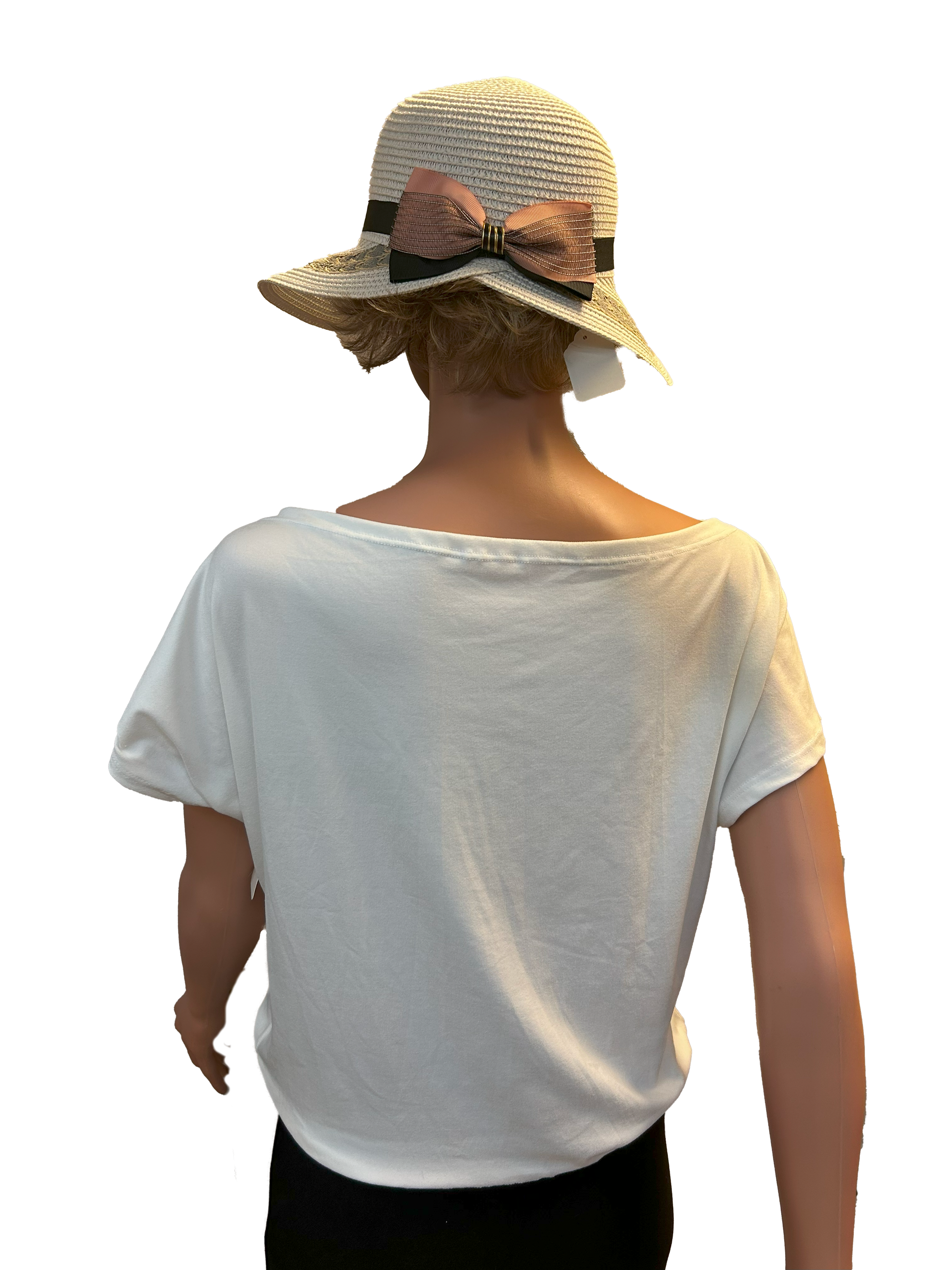Paw Drazzel Boutique Women's Casualwear, Open Shoulder, Short Sleeve, Round Wide Neck Blouse
