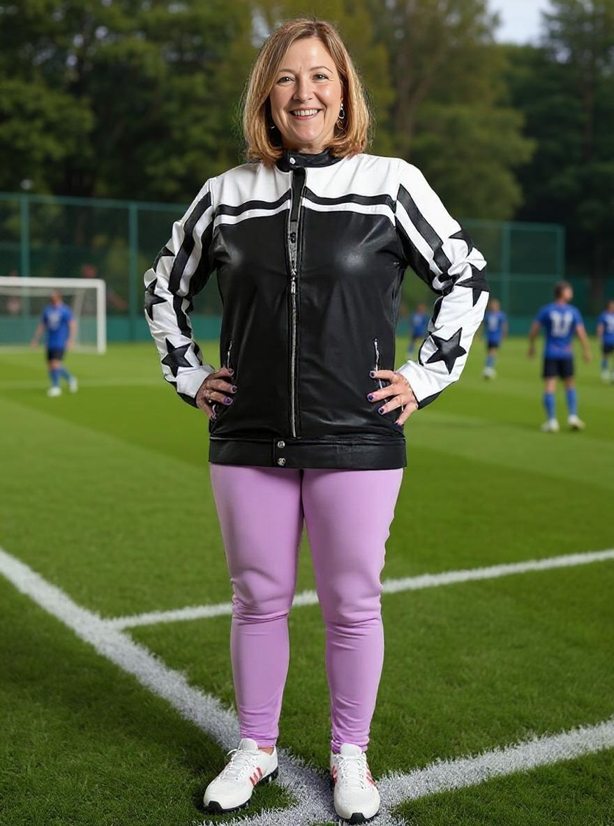 Paw Drazzel Boutique Women's Black and White, Starred, Zip-up, Goatskin, Cafe Racer Jacket