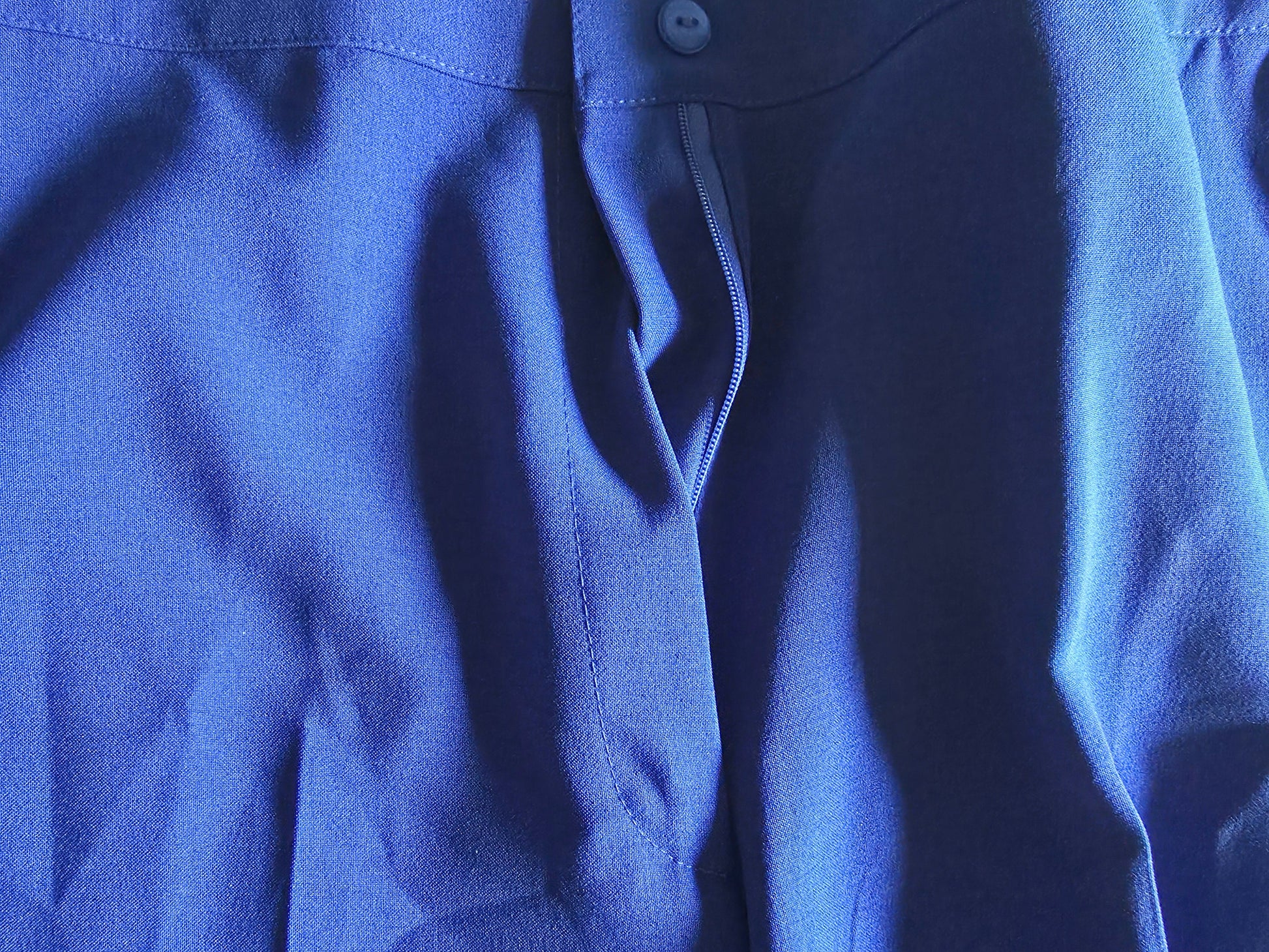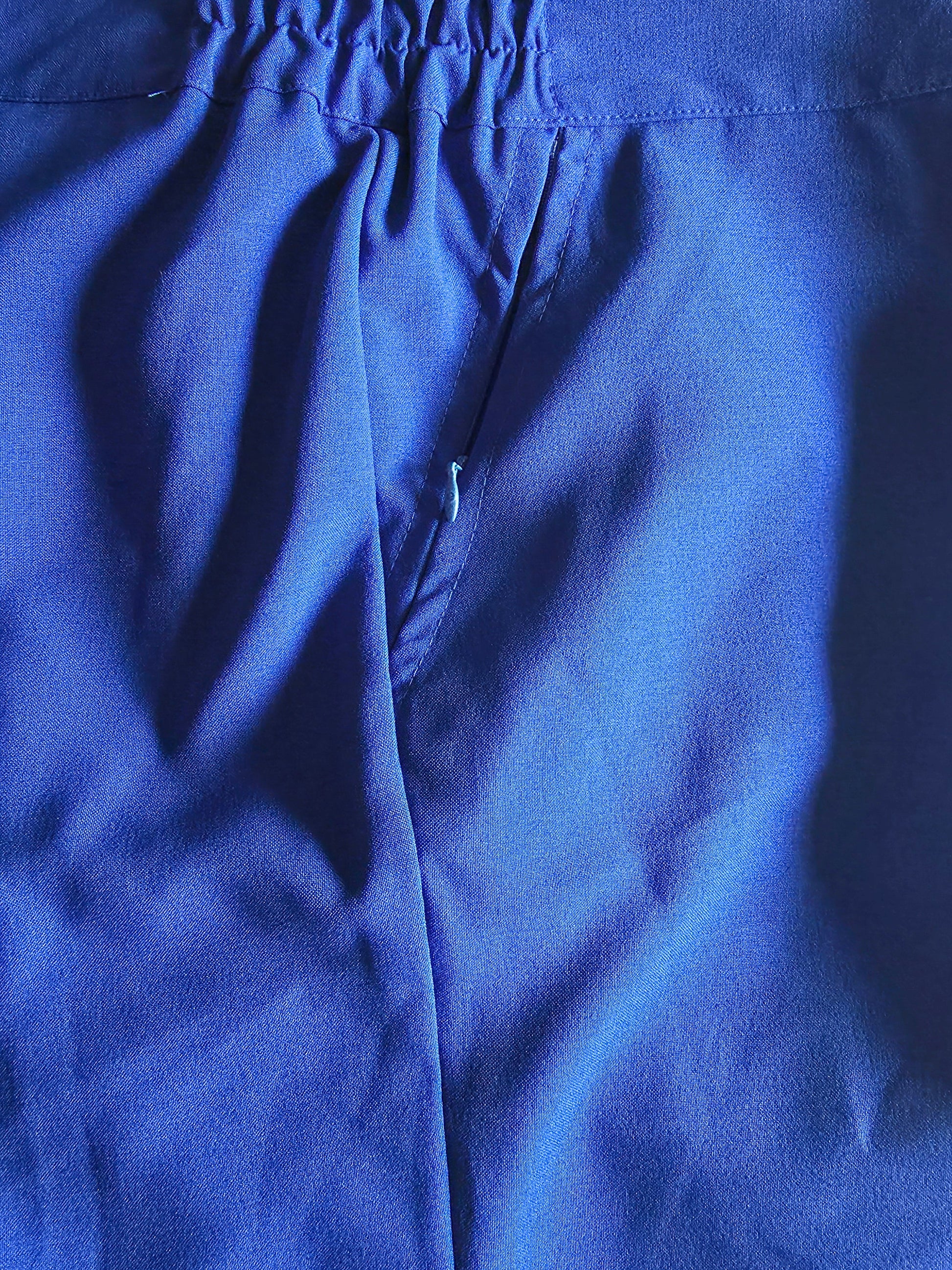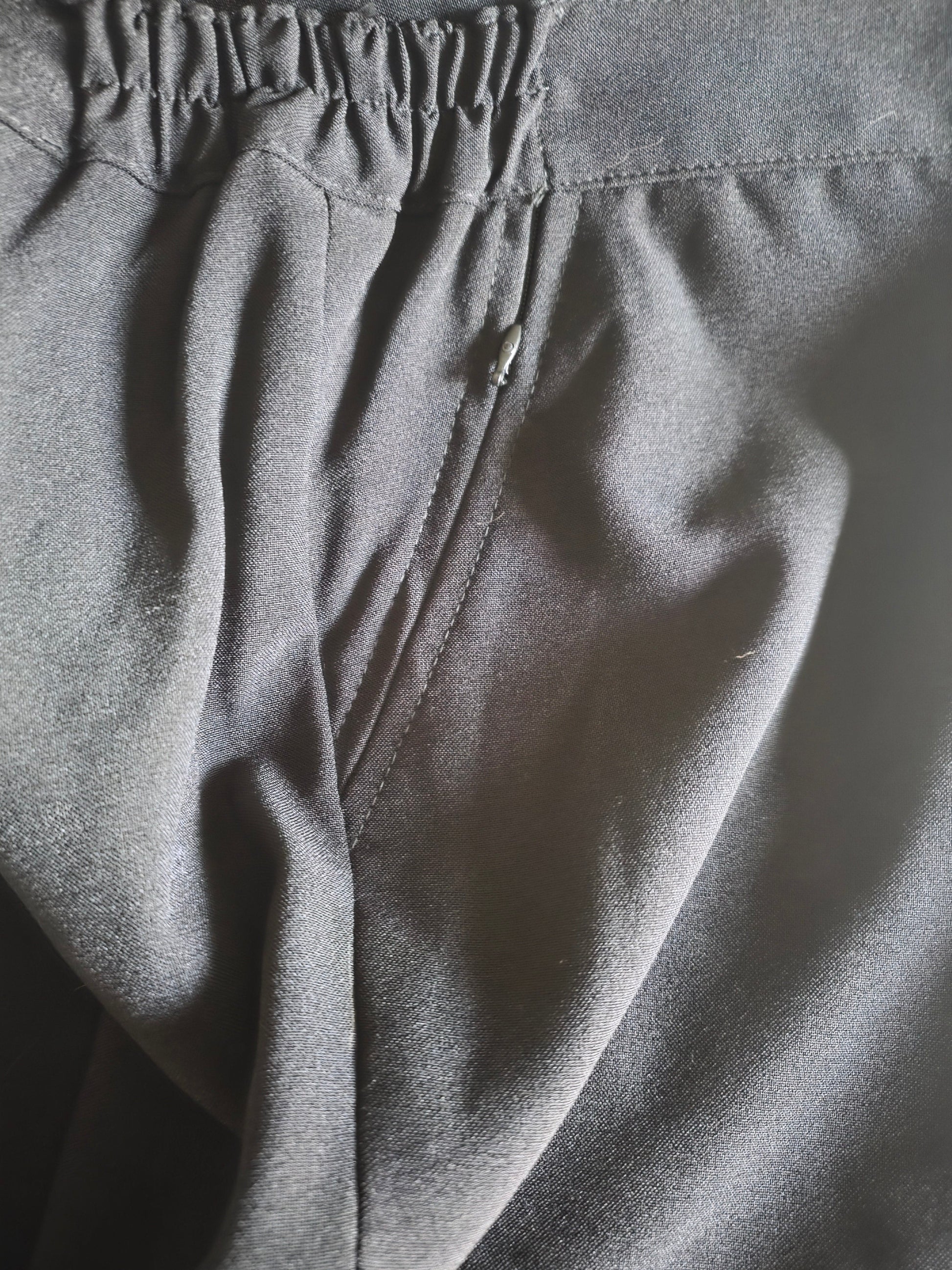 For added comfort and flexibility, the waistband is thoughtfully constructed with two discreet elastic sections on the sides, providing an adaptable fit that moves with you throughout the day. Two functional zippered pockets offer secure storage for your essentials while maintaining a polished look.
