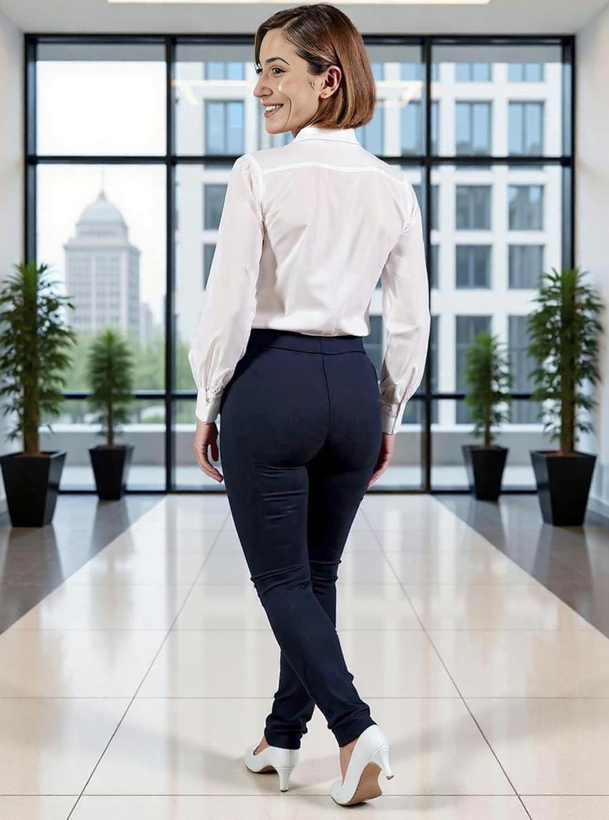 Step into effortless sophistication with these slim-fit ankle dress pants, designed to balance professionalism with modern style. Crafted with a high-rise waist and tailored legs, they create a sleek silhouette that transitions seamlessly from office hours to after-hours. The smooth front and subtle crease detail deliver a refined finish, while the stretch-infused fabric ensures lasting comfort throughout your day. Pair them with a crisp blouse for a polished boardroom look or style them with a relaxed top for an elevated casual ensemble.