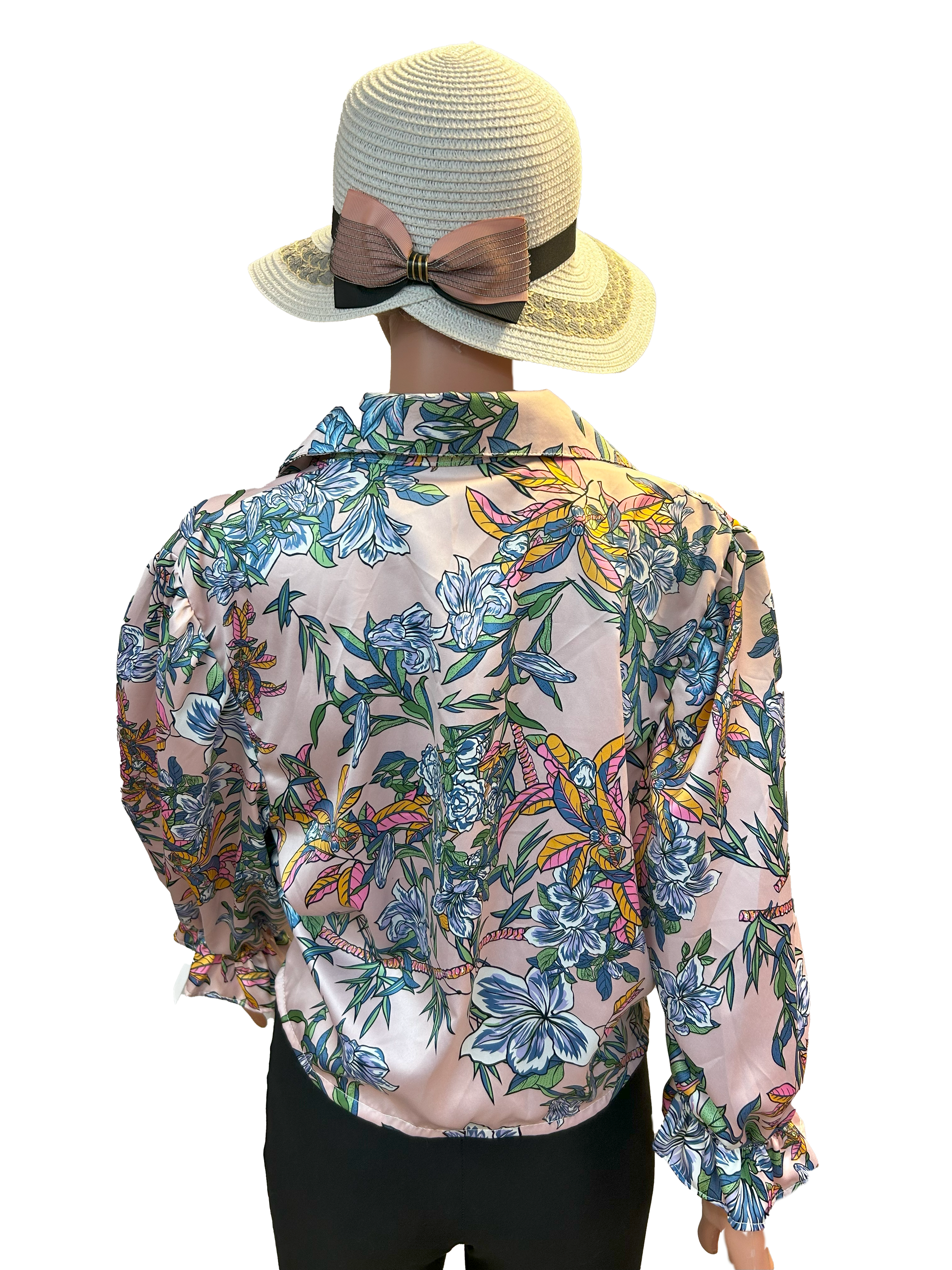 Paw Drazzel Boutique Women's Casualwear, Full Shoulder, Long Sleeve, V Neck, Front Tie Satin Blouse