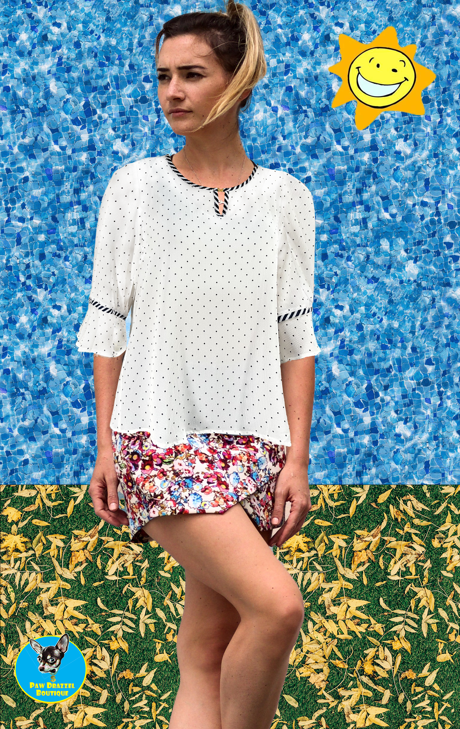 Paw Drazzel Boutique Women's Casualwear, Full Shoulder, 3/4 Sleeve, Size 14 Blouse