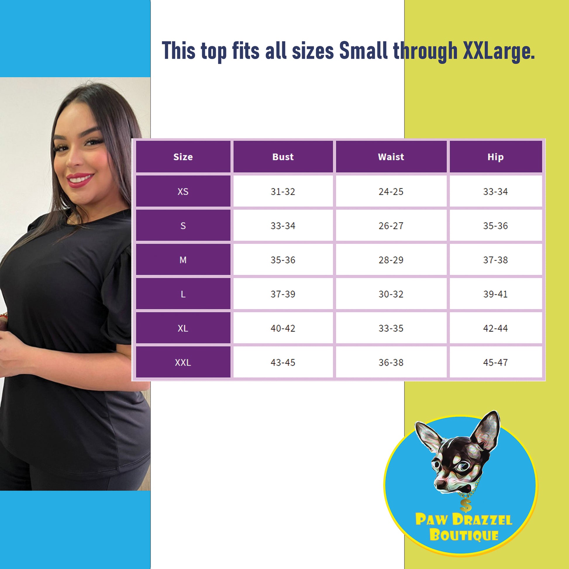 Paw Drazzel Boutique Women's Casualwear, Layered Shoulder, 1/4 Sleeve, Round Neck Tulip Top
